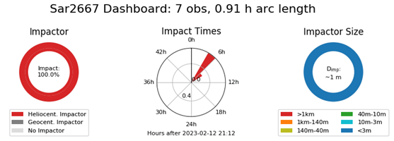 First impact assessment by ESA’s tool Meerkat as reported at 21:33 UTC with only 7 measurements, already indicating an impact probability of ~100%. Credit: ESA / PDO